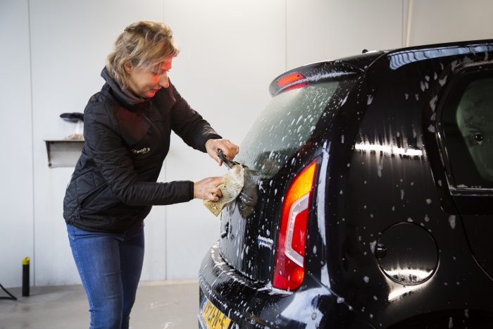 Detailing und Innenreinigung sind ebenfalls Teil des Angebots. Flecken auf den Sitzen, Teer oder Farbe am Auto, Sonja legt nicht Hand an. Mit ihrer zwanzigjährigen Erfahrung weiß sie, wie sie jeden Schmutz entfernen kann.