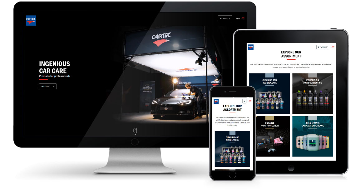 Cartec’s new website is a combination of product information and branding. Here you’ll find the four ‘worlds’ in which Cartec supplies products for the professional car care industry. The four worlds are divided in: